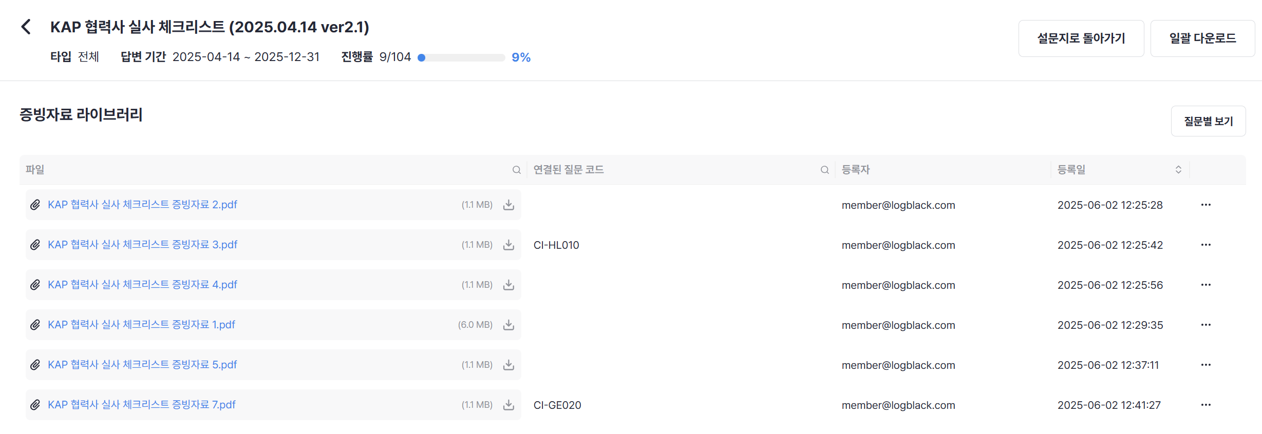 업로드된 증빙자료는 증빙자료 목록을 클릭하여 확인할 수 있습니다.